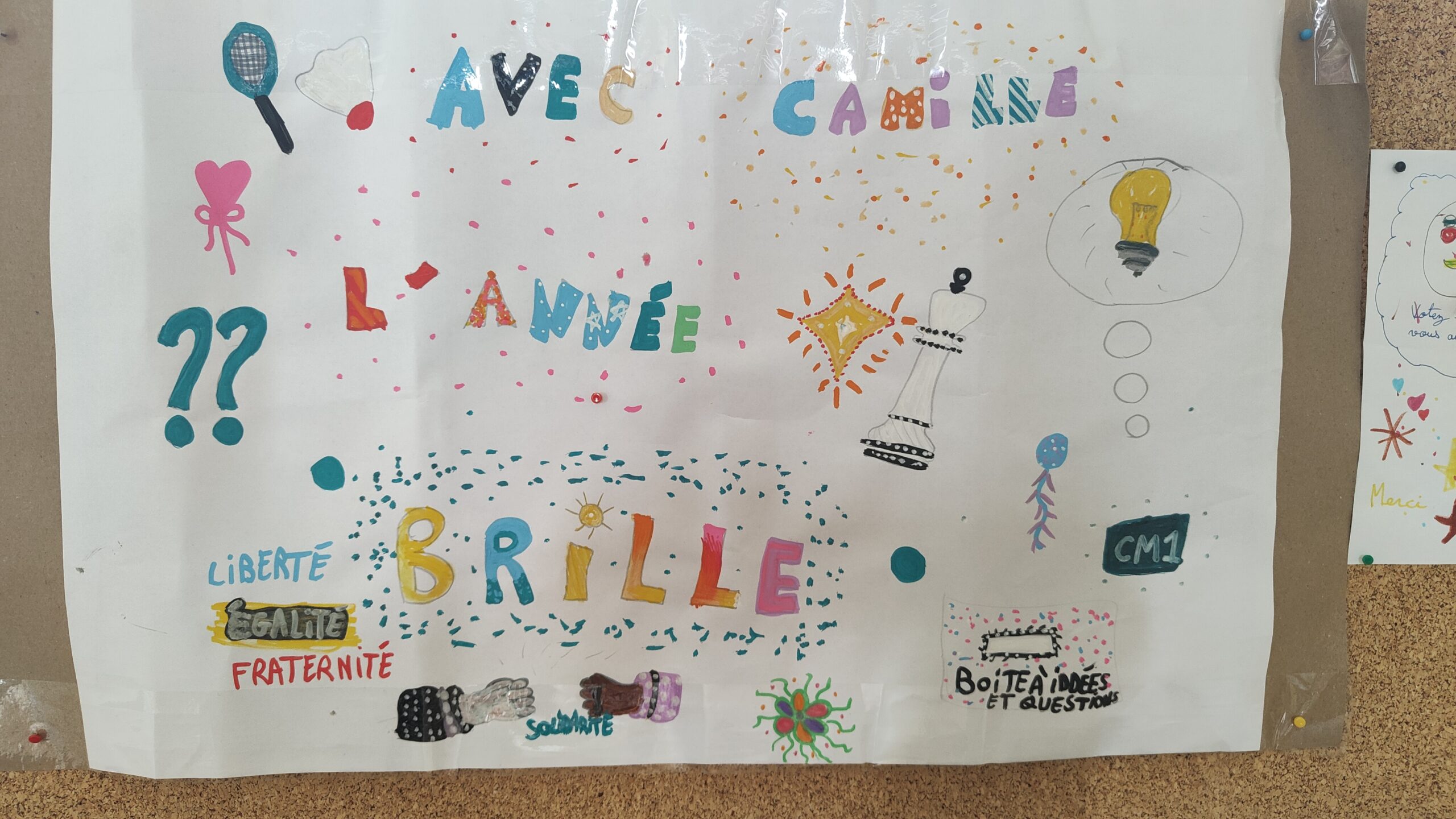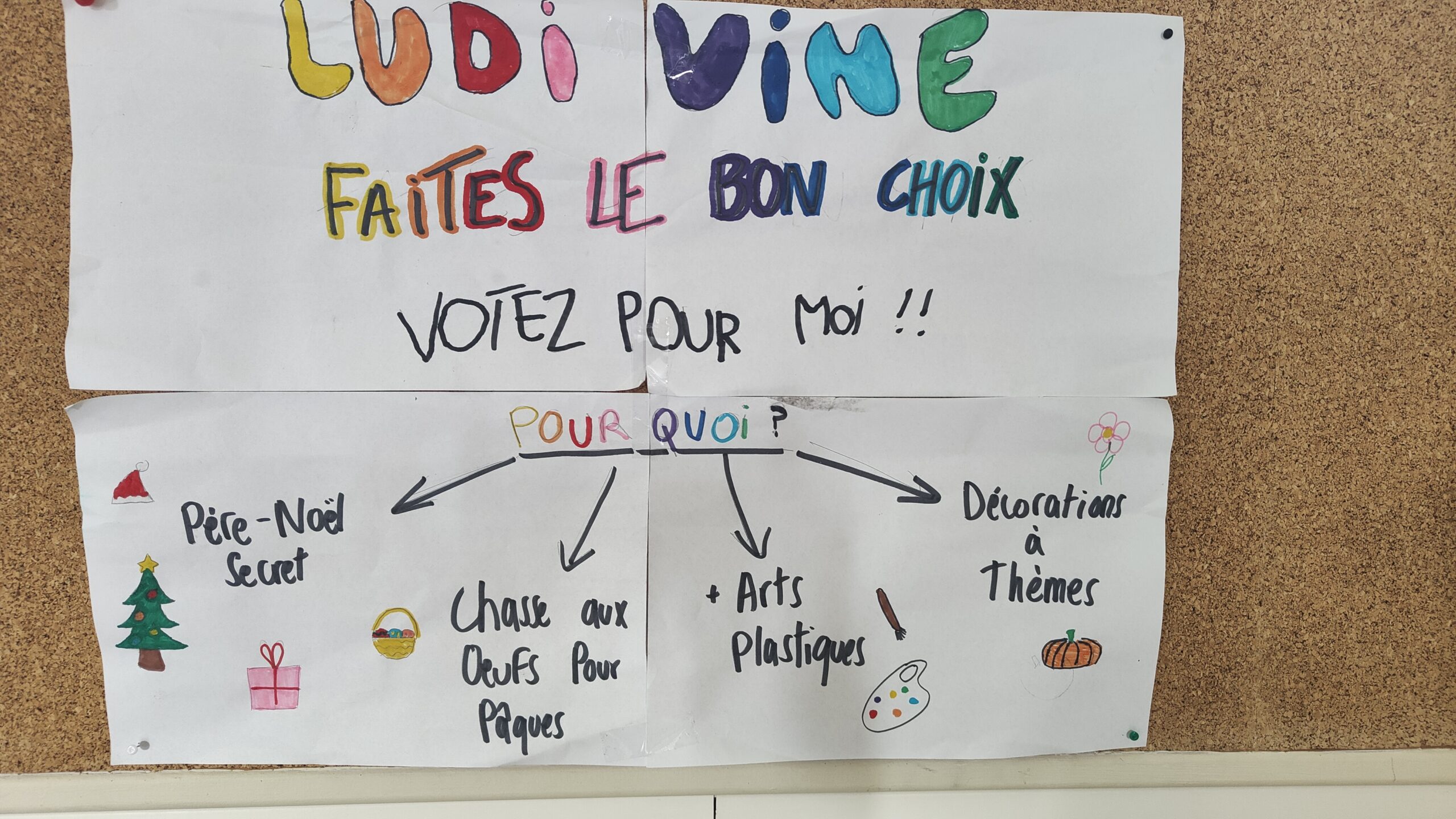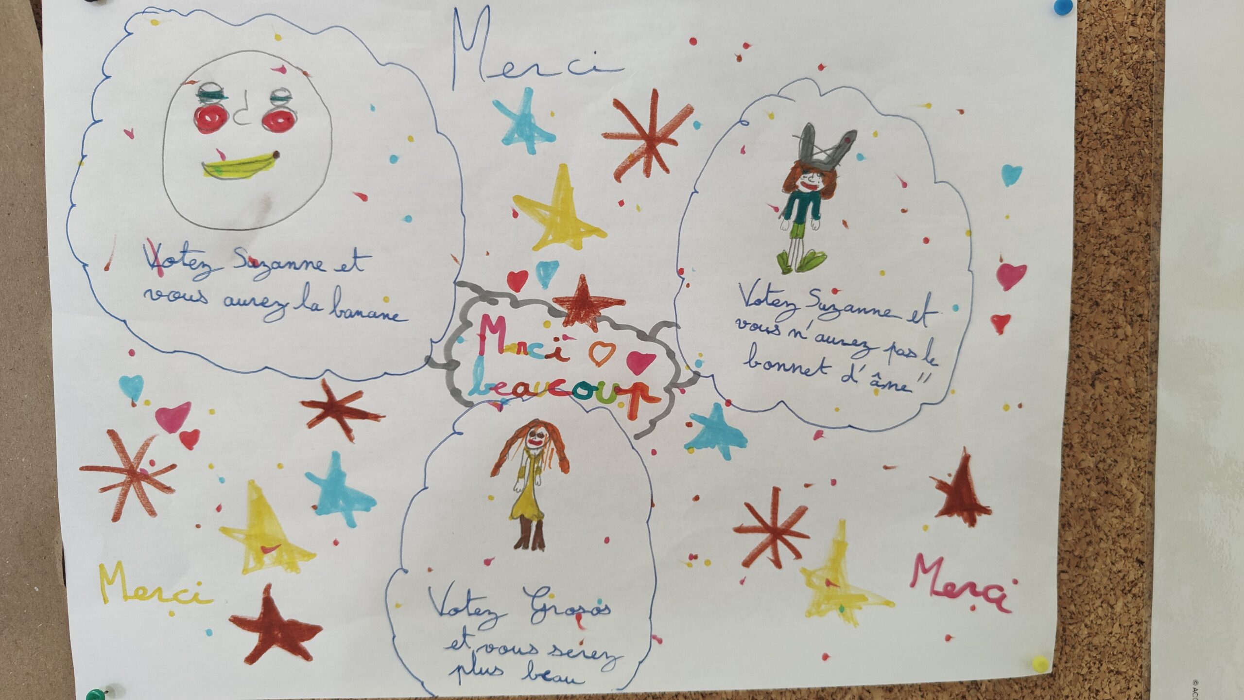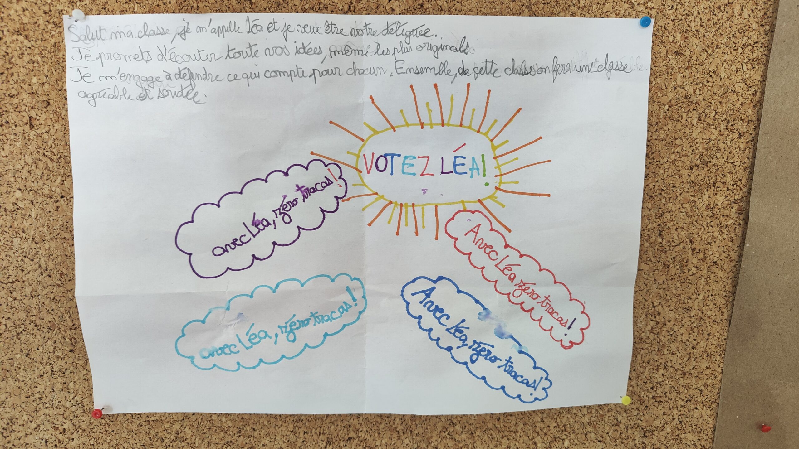 Chaque candidat.e a préparé une déclaration publique et parfois une affiche, pour présenter ses motivations aux autres élèves. Nous avons ensuite procédé à l’élection. Des assesseurs, choisis parmi les élèves ne participant pas à l’élection, ont veillé au bon dépouillement des bulletins et au comptage des voix.