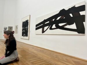 Au fil de la visite, les enfants ont observé deux ou trois œuvres et découvert comment les artistes représentent le mouvement : des corps en action, des gestes, des lignes dynamiques et des formes qui semblent bouger. Grâce aux explications adaptées du médiateur, les élèves ont été invités à regarder attentivement, à s’exprimer et à mimer certains mouvements.