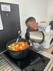 Jeudi, les élèves de PS, accompagnés de leurs parrains et marraines de CM2, ont réalisé une délicieuse soupe en classe. Petits et grands ont cuisiné ensemble dans une belle ambiance d’entraide et de coopération. Et bien sûr, Petit Loup était lui aussi de la partie !